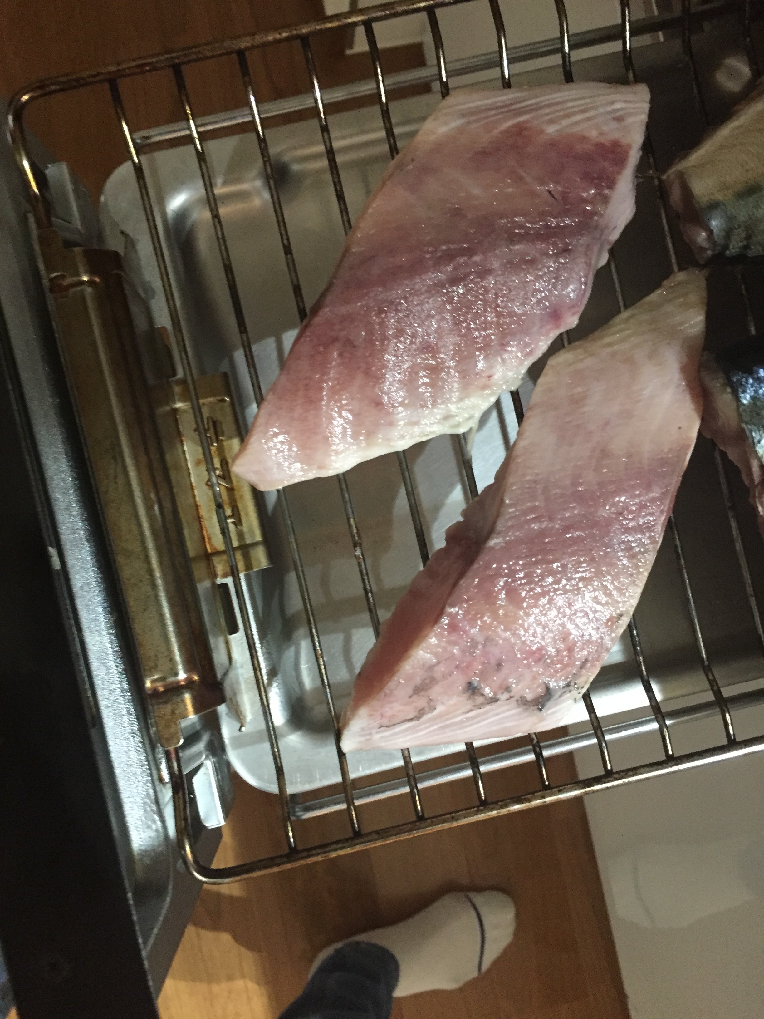 今夜の魚料理 16 08 13 シオ子の塩焼きとシイラの子の煮付け Bassingかわら版blog