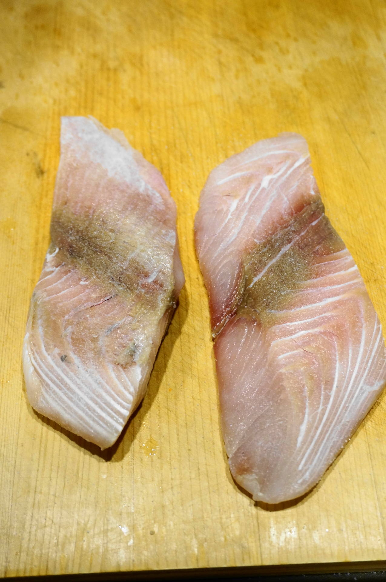 塩焼きにしていきます。 あとは切り身にしてあるので フライやムニエルにも早変わり。 切り身にしておくと調理の手間が省けていいですね。 それではフルコースの方、ご紹介していきます! カラフルな巨大魚シイラの味は如何に まずは純粋に生から。