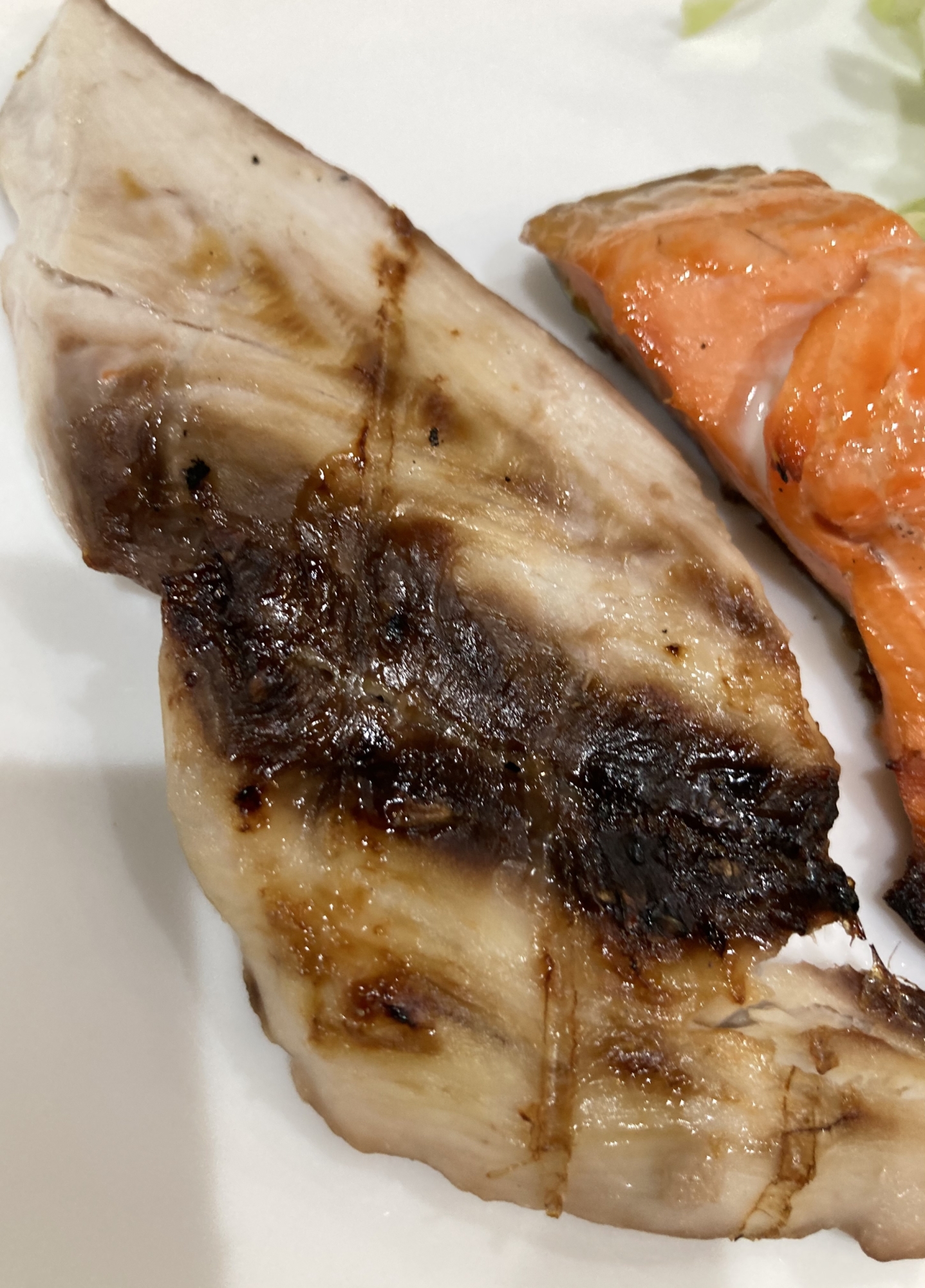そして今日はシイラのカマ! 脂が乗ってめちゃくちゃ美味しい! ! 塩振ってグリルで両面をこんがり焼き上げるだけです。 魚とは思えない、まるでスペアリブみたいな食べ応えで酒が止まらなくなります! ! 他の魚のカマも食べてみたいなぁ塩焼き シンプルなシイラ食べ方ですが塩焼きが美味しいのでオススメです。 くどくないシイラの脂感が塩焼きにマッチします。 塩焼きはシイラ釣りの釣り人では定番料理レシピとなっています。 フライ お子様や若者に人気のシイラ食べ方がフライです。 若狭シイラの塩焼き 250円! 連子鯛 一尾 600円! ブリ切り身 1切れ 490円 ブリかま690円 炭焼き四万十うなぎ 2980円 残り1 石川!秋サワラ 一切れ 450円!大550円! 函館!子持ちにしん 大 一尾480円! 天然サワラと小松菜のグリル 590円 残り3 岐阜あゆの塩焼き 390円